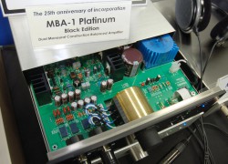 そのほか、同社の設立25周年記念として、ヘッドホンアンプ「MBA-1 Platinum」のブラックモデルとなる「MBA-1 Platinum Black Edition」も公開した。こちらは12月に、直販サイト上で5台程度の限定販売を予定しているという。価格は329,800円(税込)。筐体には非磁性ステンレスを使用しており、電磁波を吸収する点が特徴とのこと。