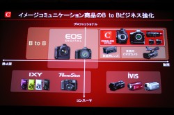「キヤノンは全ての事業分野でナンバーワンになるという目標を掲げている。2015年には、デジタルカメラ市場で40%以上のシェア獲得を目指したい。既存商品群に、コンテンツ制作向け製品を加えることでB2Bを拡大。2015年は売上100億円を目指す考えだ」と展望を明らかにした。