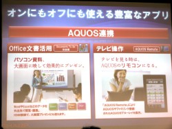 商品力を高めるため、今後は液晶テレビ“AQUOS”やBDレコーダー“AQUOSブルーレイ”などとの連携を強化して行く考えを強調。ただし前述の通り、今回の新製品ではネットワークによる連携機能は搭載されていない。