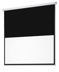 幕面はホワイト(WG)の拡散型で、視野角が広いことが特徴。また設置面でも取付金具とキャップを樹脂成形で一体化し、ケースはスリムな四角形とした。電動モデルは回路基板をケース内に収納しており、赤外線リモコンも標準装備。手動モデルはボールストップ機構で正確な引き出しと固定が可能で、ソフトワインド機構により巻き上げ操作も快適に行える。