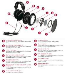 【SPEC】●型式:ダイナミック、開放型 ●ドライバー口径:40mm ●感度(1kHz):101dB SPL/mW ●再生周波数帯域:15Hz〜27kHz ●最大許容入力(1kHz):1000mW ●インピーダンス(1kHz):37Ω ●入力コネクター:金メッキ3.5mmステレオ・ミニプラグ 金メッキ6.3mm標準プラグアダプター ●ケーブル:2.1m(着脱式、OFC) ●質量(ケーブル除く):約343g