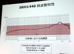 さらにSRH1440はポータブルオーディオプレーヤーと直接接続しても使えるよう、感度やインピーダンスを最適化した。感度は101 dB SPL/mWで、SRH1840の96dBに比べ5dBほど高い。インピーダンスも36Ω(1kHz)で、65ΩのSRH1840に比べ低く設定した。再生周波数帯域は15Hz〜27kHz。