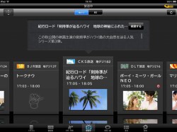 また、放送中番組の一覧表示にも対応。現在放送中の番組について、写真画像と詳細な情報をiPadの画面上に表示する。番組情報を指で前方(画面上部)へ送り出すように操作することで、Woooのチャンネル選局が可能。