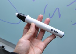 また電子黒板機能については、PCへのドライバーのインストールを必要とせず、すぐに電子黒板として使い始めることができる。オートキャリブレーション機能や解像度の自動認識機能も新たに設け、セットアップも素速く行える。本体付属の電子ペンをマウスとして使用して、クリックやドラッグなど投写画面上でPC操作が可能。書画カメラやBDプレーヤーなどとの接続時にも、投写画面上に文字や図形を直接書き込める。またPCとの接続時には「マルチペン」に対応し、画面に映し出された映像に2人同時に書き込んだり、マウス操作が行える。