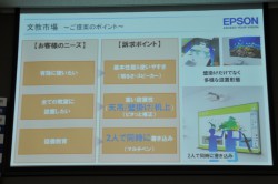 エプソンでは今後、明るく高精細な画面表示、優れた設置・操作性などの魅力をアピールしながら、本日発表の製品を含むプロジェクター製品のラインナップで、さらなる販売台数・シェアの増加を図るとともに、プロジェクター市場の拡大を目指していく。