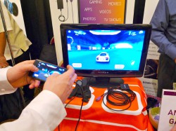 中でも大々的にデモンストレーションしていたのが「Stremer XL Kit」。スマホの映像を同社のキットを使用してテレビ側へと出力するコネクターだ。解像度等はスマートフォン内にあるデータに依存してしまうが、コネクター自体は1080/60pのデータの伝送が可能だ。写真データやビデオデータ以外にもゲームを行っている映像や通常の動作の出力内容も表示が可能。デモンストレーションではゲームの実演を行っていたが、遅延は少なかった。