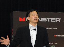 ケーブルやヘッドホンを始めとして、コンシューマーユーザーのみならずミュージシャンなどからも高い支持を獲得しているMONSTER。CESのプレスカンファレンスで、同社CEOであるNoel Lee氏は昨年を振り返り、「ディズニーとコラボレーションしたTRONシリーズやBeats Pro、新しいHDMIケーブルの成功など、MONSTERにとって非常に素晴らしい一年となった」とした上で、「2012年は革命の一年としたい」と意欲を語った。