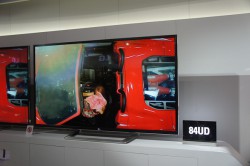 今回もブース内には数多くのテレビが立ち並んでいたが、そのほとんどがCINEMA 3Dに対応したモデルであった。展示されているCINEMA 3Dモデルは、「84UD」「LM9600」「LM9500」「LM8600」「LM7600」「LM6700」「LM6600」「LM6200」「PM6700」「PM6500」「PM4700」の11シリーズだ、大型から中型までのモデルと取り揃えており、多くのユーザーの要望に応えられるようにしている。