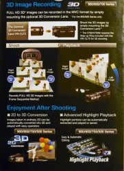 X900とX800は、パナソニックがこれまで得意としてきた3MOSのメリットをさらに活かしたモデル。3Dに対しても別売のコンバージョンレンズを使用するのは従来と同じながら、フルHDでの3D撮影を実現。本体レンズをワイド側に振ったことでF値がF3.2からF2.0へと大幅に改善し、新採用のクリスタルエンジンPRO2の採用で低照度画質もいっそう向上しているという。従来はねじ込むような形で取り付けていた3Dコンバージョンレンズもワンタッチで装着できるようになった。