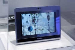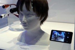 最後に2つの参考出品モデルに注目してみたい。一つはWi-Fiを内蔵するデジカメとスマートフォンを連携させ、スマートフォンからデジカメのズーム操作や撮影を行えるようにしたもの。デモに使われていたデジカメは市販されているDMC-FX90がベースになっていた。Wi-Fi経由でP2P接続してスマートフォン側からのコントロールを可能にしている。