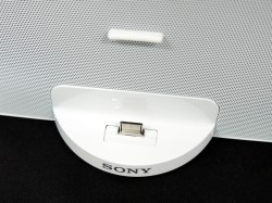 スピーカーはフルレンジ・バスレフ式で、出力が2W+2W。ドック部はウォークマンにカバーを装着したままでも接続可能。また、ウォークマン接続時用の“背もたれ”部を設けており、本体がぐらつかないようにも配慮している。
