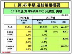 シャープ(株)は、本日2011年度第3四半期の連結業績説明会を開催。代表取締役社長の片山幹雄氏らが登壇し、説明を行った。