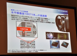 同社の2011年度実績については、上期・下期ともに台数実績が前年を上回る成果が残せそうであるという。2011年度の国内市場での実績予測は「台数増となる180万台、金額微減となる843億」という見通しを立てた。2012年度はやや減速しつつも、台数は175万台を確保できるという予測も示された。このような市場の状況を鑑みつつ、鈴木氏はJVCとしてのビデオカメラ事業の新しいビジョンを発表。「これまでのビデオカメラはハレの舞台でお客様の様々な“思い出を残す”ための製品だったが、これからは動画でコミュニケーションを図る人たちを中心に、“人生そのものを見守る”ための商品として訴求していきたい」とし、意欲を示した。