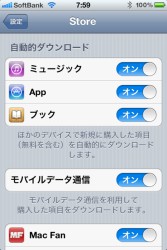 「iTunes in the Cloud」では、iTunes Storeで購入した楽曲を、同じApple IDでひもづけられたPC/MacやiPhoneなどからダウンロードできるサービス。対応機器で自動ダウンロードを行うことも可能。自動ダウンロードはWi-Fi、3Gネットワークのどちらも行え、iOSの場合、「設定→Store」で自動ダウンロードを行うかどうか、3G回線でもダウンロードを行うかを設定できる。