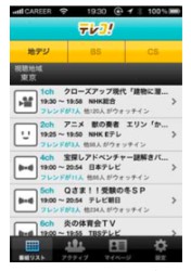 地上波/BS/CSのテレビ番組情報を横断して検索できるアプリ。FacebookやTwitterと連携したソーシャル機能「ウォッチイン」機能を搭載し、視聴している番組にウォッチインし、ソーシャルメディアへ投稿することができる。