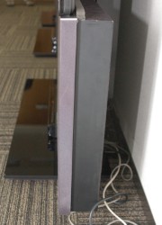 液晶テレビ“AQUOS”の既存モデルと組み合わせて使用できるよう設計した。壁寄せ設置できるスリムなモデルで、筐体最薄部は95mm。本体下部には、レコーダー/プレーヤーを1台収納できるスペースが設けられている。