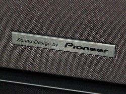 スピーカーは、6.3cm両面駆動HVTユニットと3cmのトゥイーターを2基ずつ、16cmのウーファーを1基搭載する2.1ch構成。HVTスピーカーは以前からパイオニアが採用しているものだが、今回搭載した新型スピーカーは、シャープがパイオニアと一年以上に渡って共同開発したもの。横方向に動く新開発振動板を採用することにより薄型化を実現。360度方向に音を放射する無指向性を特徴としている。実用最大出力は、フロント75W+75W/サブウーファー150W。
