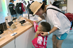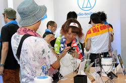ブースではサマソニ出演アーティストの曲を使ってオーディオテクニカ製品の試聴も行える。注目は、今秋全世界で同時発売される新製品「SonicFuel(ソニックフューエル)」(関連ニュース)。発売に先駆けて初お目見えしていた。