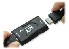 HDMI入力端子とHDMI出力端子を1系統ずつ備えており、入力されたHDMI信号に増幅等の調整を行って出力するHDMIリピーター。入力側に最大3m、出力側に最大20mのHDMIケーブルを接続することが可能で、映像機器とテレビの間のHDMI接続距離を最大23mまで延長することができる。