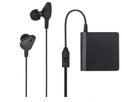 ワイヤレスアダプター部とイヤホン部に分かれたスタイルを採用。ノイズキャンセリングレベルを最大-25dBと高め、環境騒音を約94%低減するアクティブノイズキャンセリング回路を搭載した。騒音下においても迫力のある低域とクリアな中域を再現するため、独自のチューニングを行ったという。