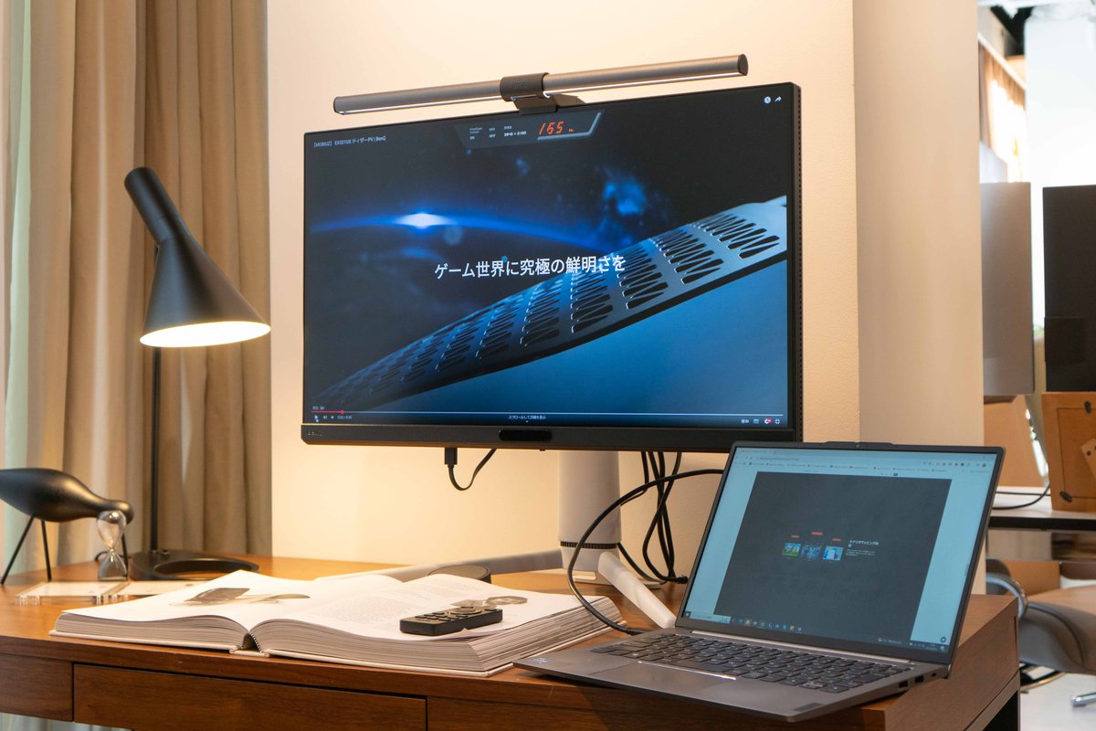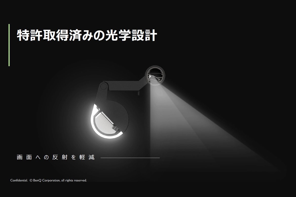 また、今回のイベントでは同社が世界で初めて開発したとされている、PCモニターに引っ掛ける照明「モニターライト」も展示しているとのこと。世界累計100万台を突破しているアイテムであり、特許取得済みの光学設計「ASYM-Light非対称光学」を導入することで画面反射を生じさせず、デスクのみをライトで照らすことで、眼精疲労を軽減するライティングが可能だと説明した。
