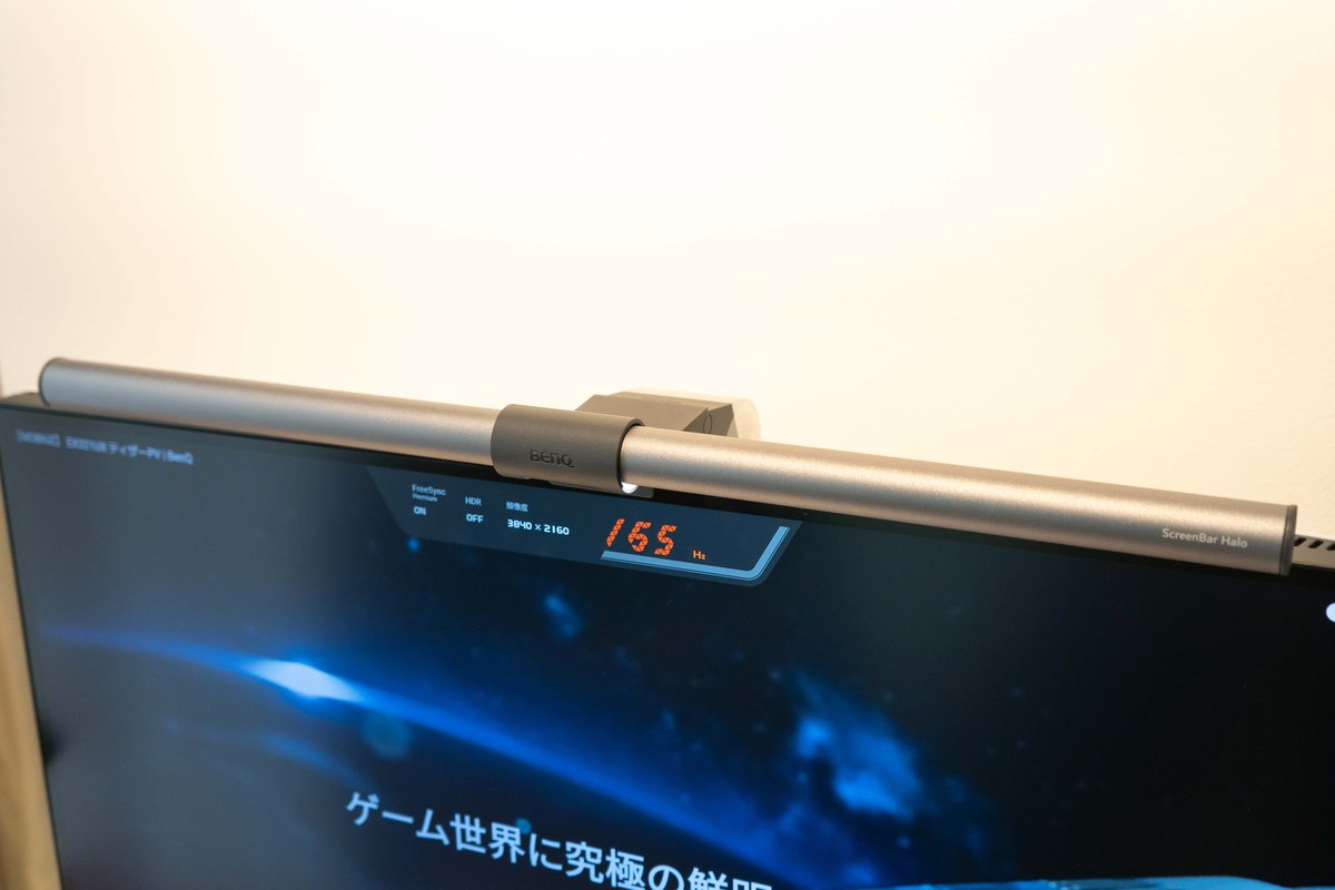 モニターライト“ScreenBarシリーズ”は、本体タッチ式の「ScreenBar」、自動点灯/消灯機能を備えた「ScreenBar Pro」、背面ライトで無線リモコンを付属する「ScreenBar Halo」をラインナップしており、本イベントではScreen Haloが設置されていた。