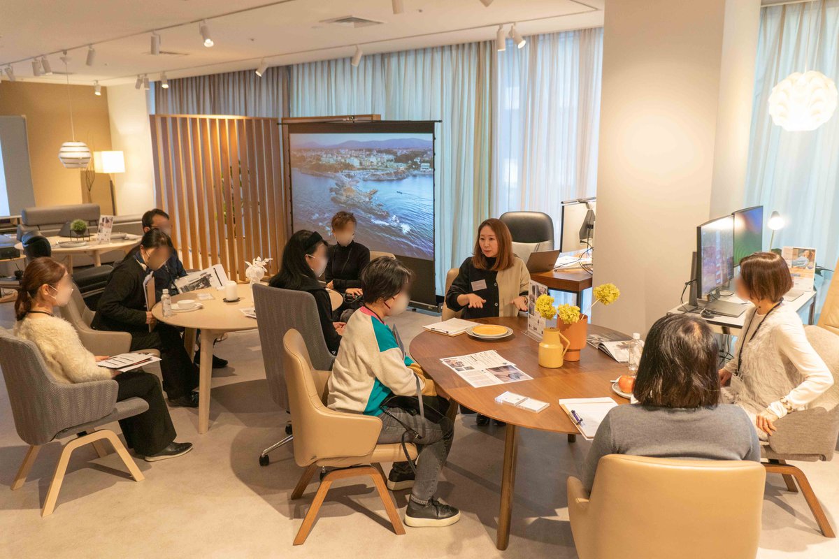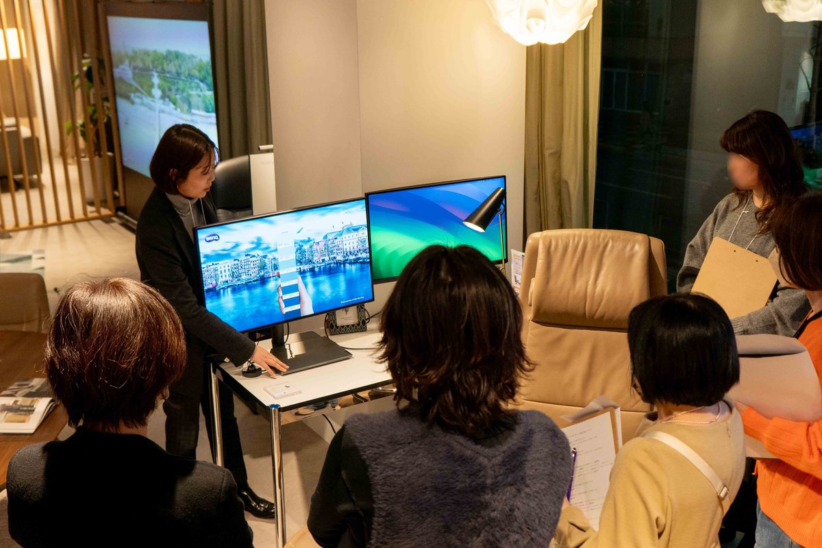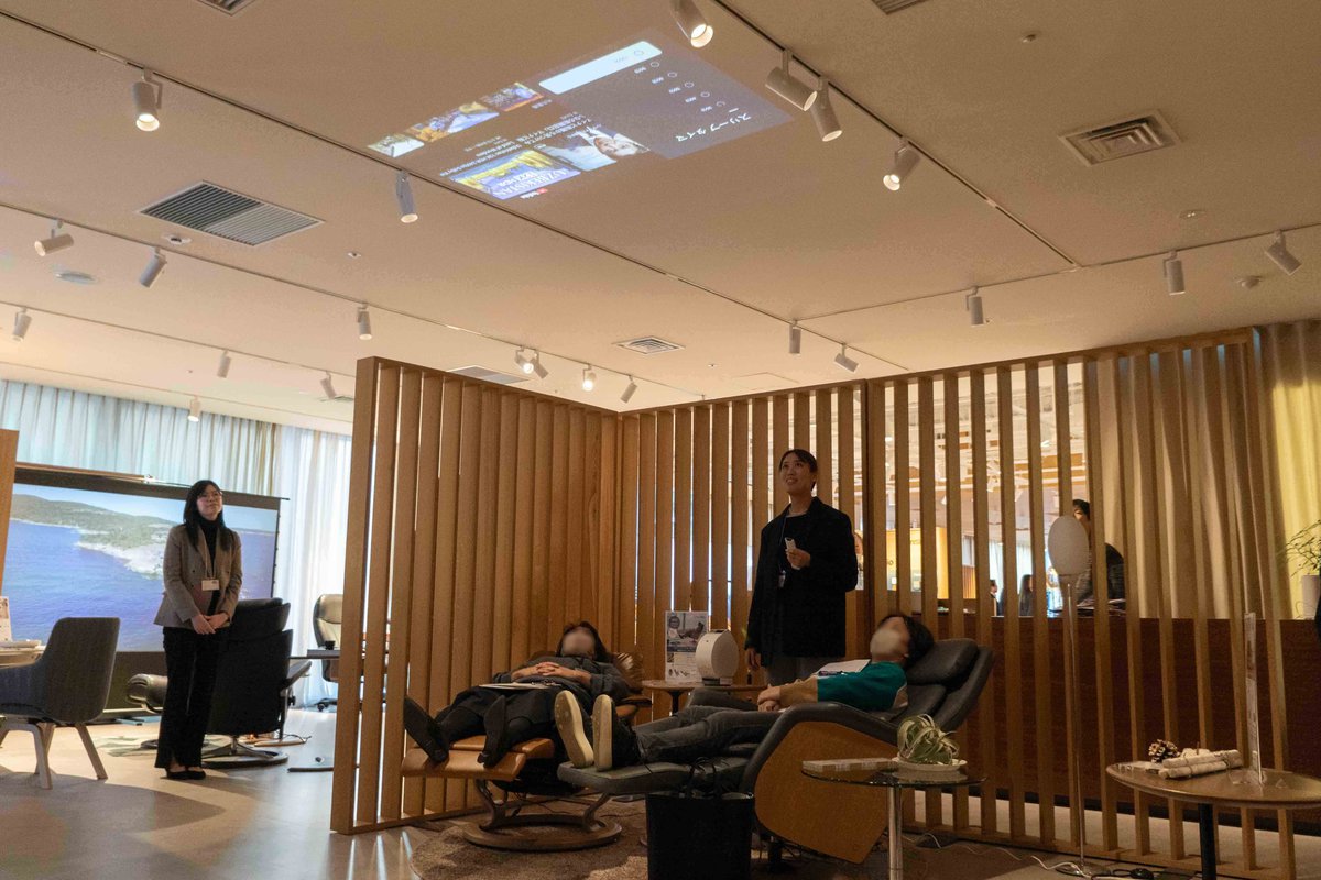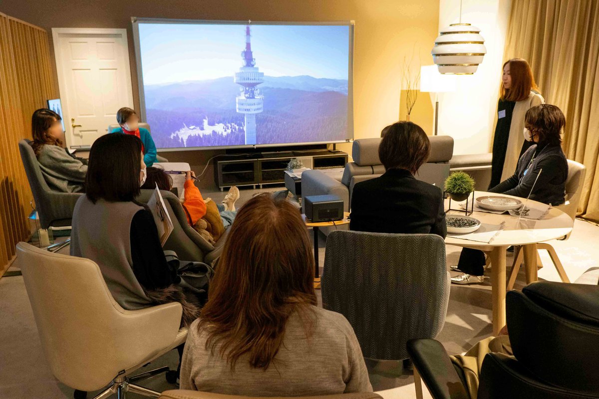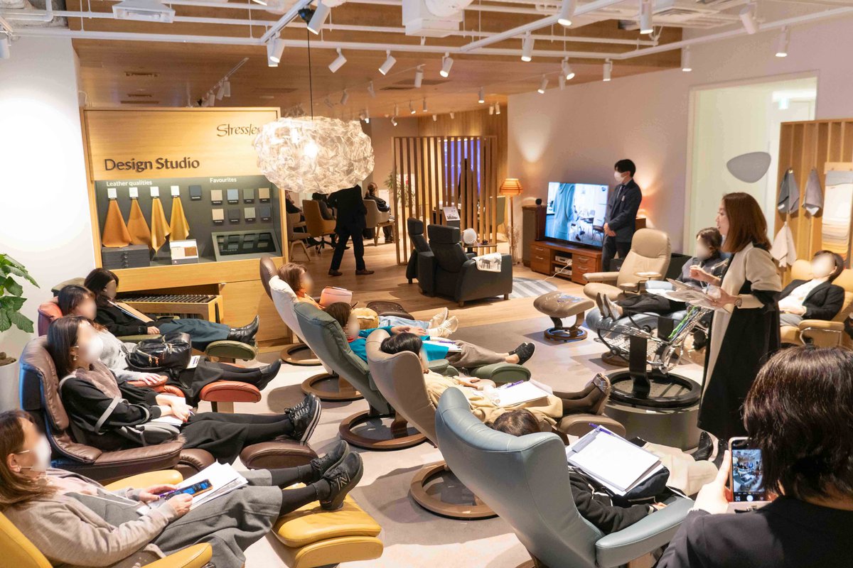 さまざまなシーンでストレスレスチェアを組み合わせたが、個別に部屋がなくても畳一畳分のスペースで快適なパーソナル空間を作ることができる特徴を備えているからこそ、家のどの部屋、何をするシーンでも、ストレスレスで叶う心地よい家づくりが可能であることが、参加者に伝わるプレゼンテーションとなっていた。