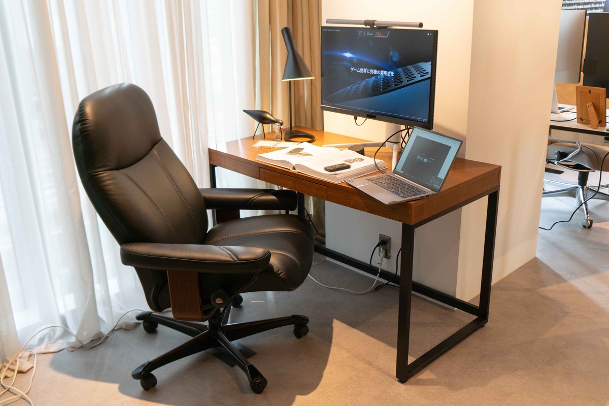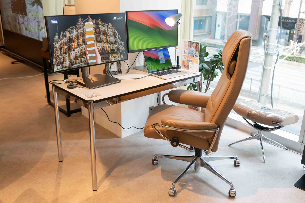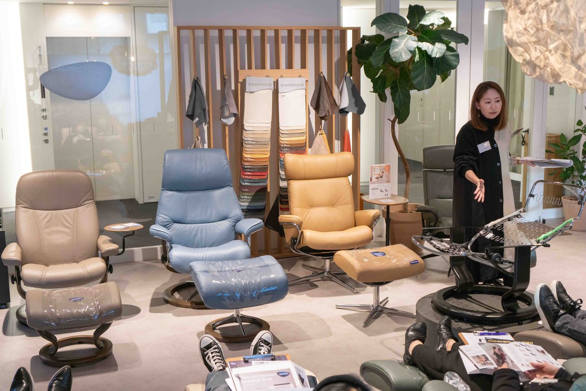 「ホームオフィスに組み込みやすいストレスレスチェアは、自身でも使いたくなるほどの座り心地。コロナ禍を経て、自宅にリモートスペースを設ける方が増えてきているため、ホームオフィスに適したチェアは多くの人に体験してほしいアイテム。実際に座ると他のチェアとの違いが明確に実感できるため、まず体感してみてほしい」