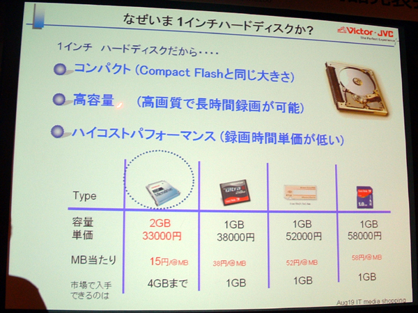 ビクター、1インチHDDにMPEG2記録するHDDカメラ“Everio”を発売