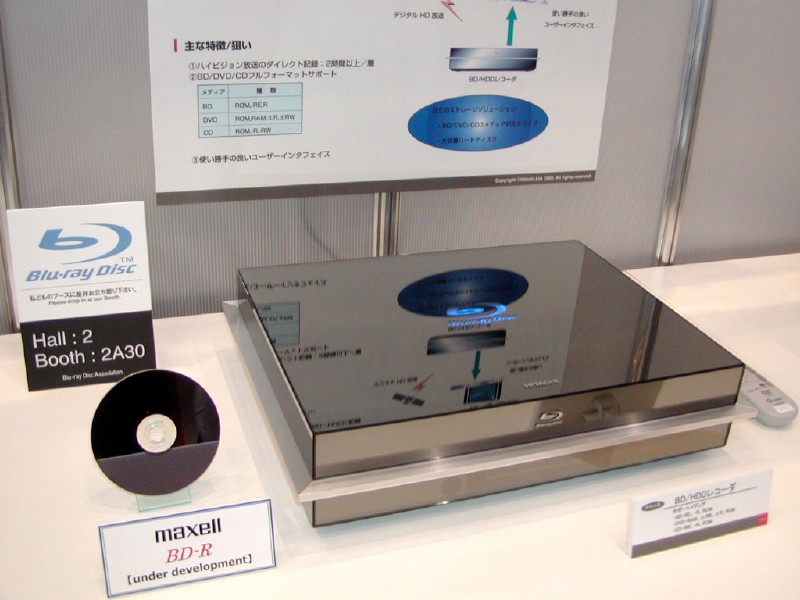 BD+HDDレコーダーの試作機。左はマクセル製のBD-Rディスク