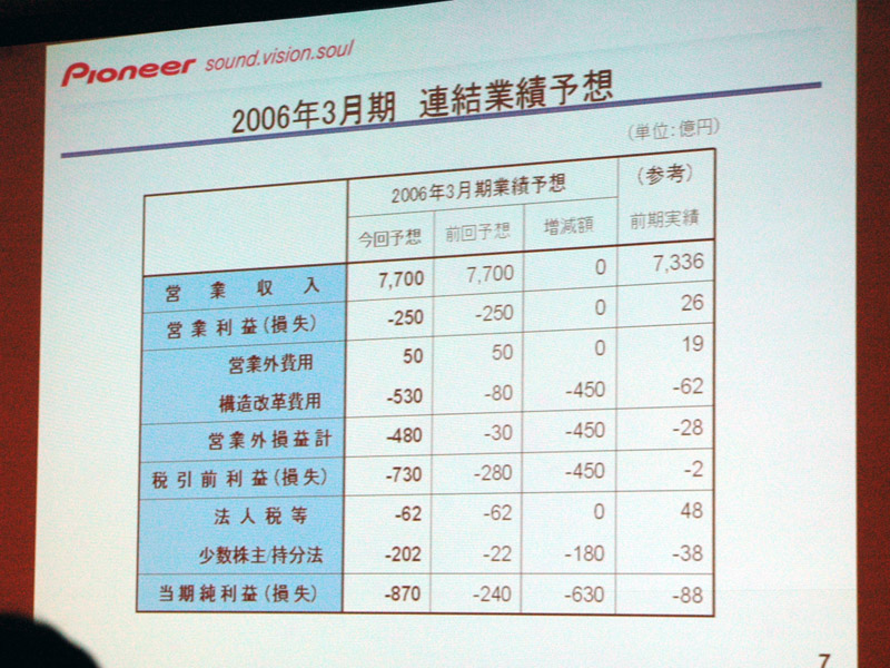 2006年 連結業績予想は840億円の赤字