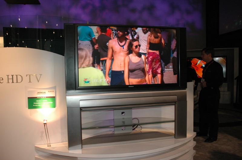 解像度1280×720の日立製プロジェクションテレビ「50V720」も展示