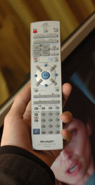 本機のリモコン。テレビやDVDプレーヤーの操作も行える
