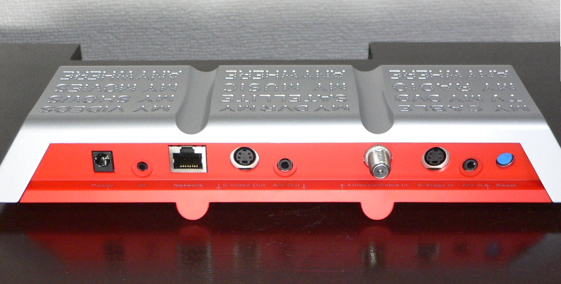 本体背面の端子はシンプル。AV入力はビデオ端子・ステレオをまとめた専用ケーブルとS端子を搭載。スルー出力もある