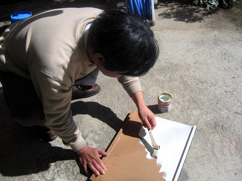 レールを跨がせるボードは天井の色に合わせて白く塗った