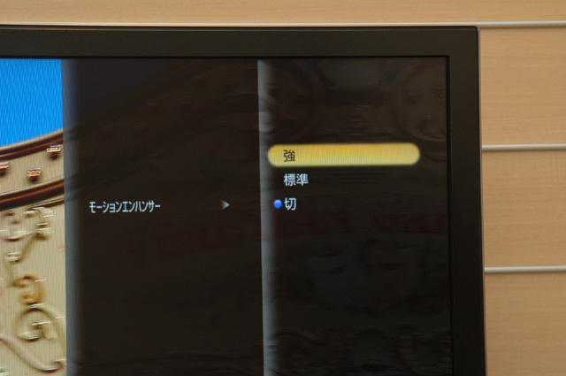 モーションフローの効果はその強弱を好みに合わせて3段階に調節が可能だ