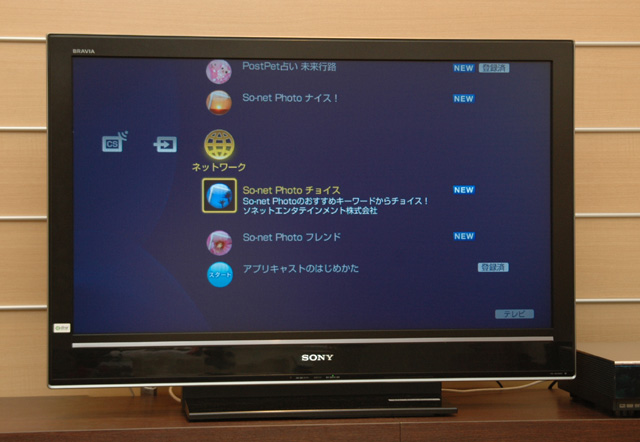 アプリキャストは「アプリ」と呼ばれる専用サイトへアクセスして利用する機能。クロスメディアバーから表示したいアプリを選んで選択すると、表示画面に切り替わる