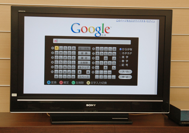 インターネットへの接続後にはソフトウェアキーボード機能とリモコンを使ってインターネット検索も可能になる