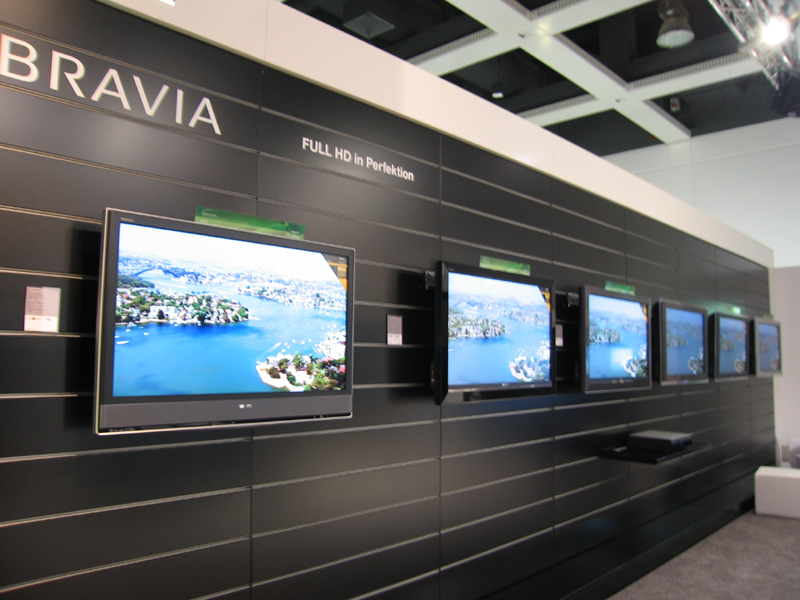 BRAVIAのフル HDモデルがズラリと並ぶ。 X、W 、Vのそれぞれ最新モデルだ