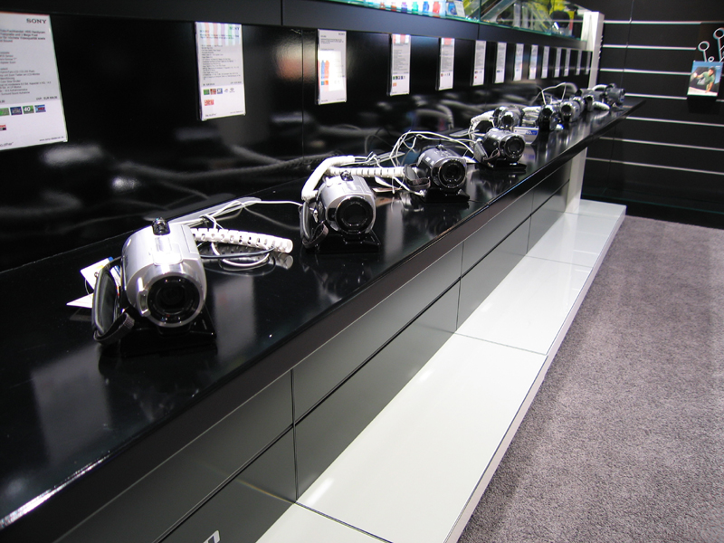 勢揃いしたハンディカム。欧州ではまだ DVテープモデルも。