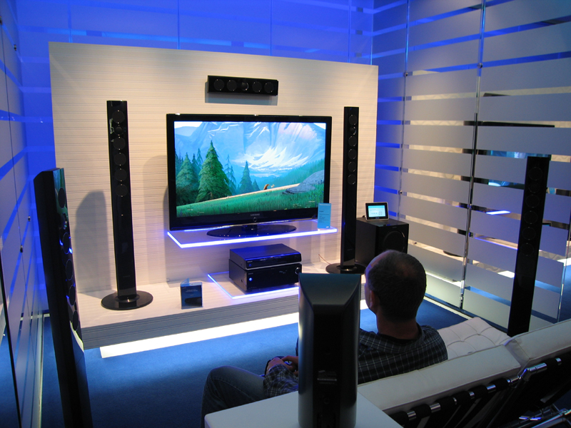 7.1chホームシアターシステム体感スペース。新ブルーレイプレーヤー「 BDP-S1400」を中心に、オーソドックスな 7.1chAVアンプで構成される