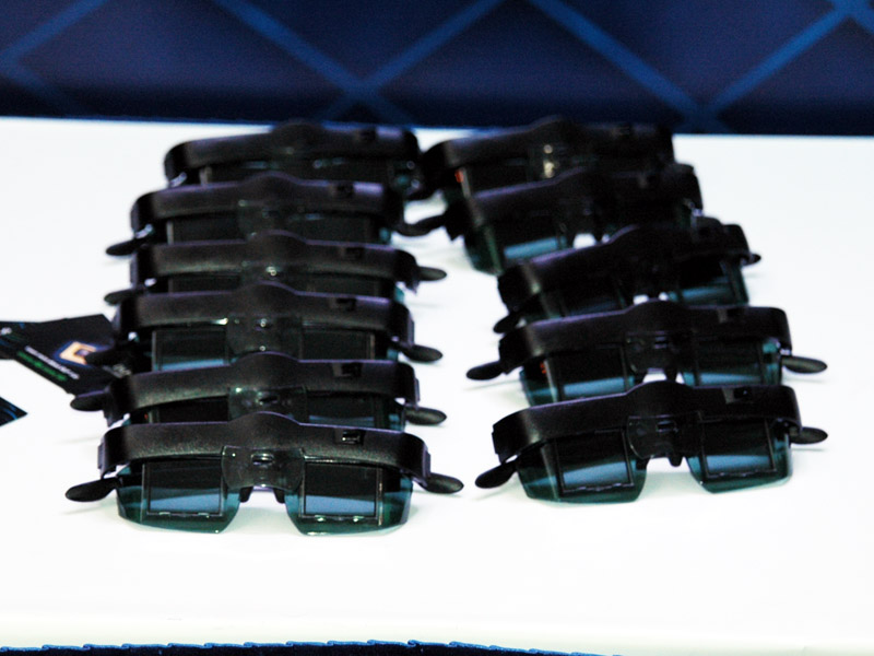 右の眼鏡の液晶シャッターがコンテンツに連動して120Hzで動くとのこと