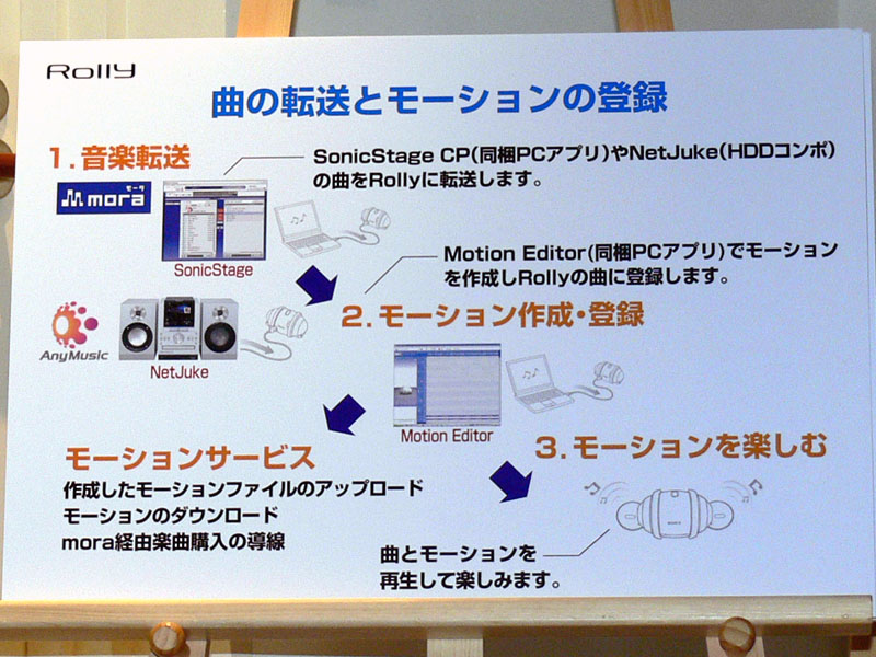 moraやSonicStage CPから曲の転送を行い、「Motion Editor」でモーションを作成する