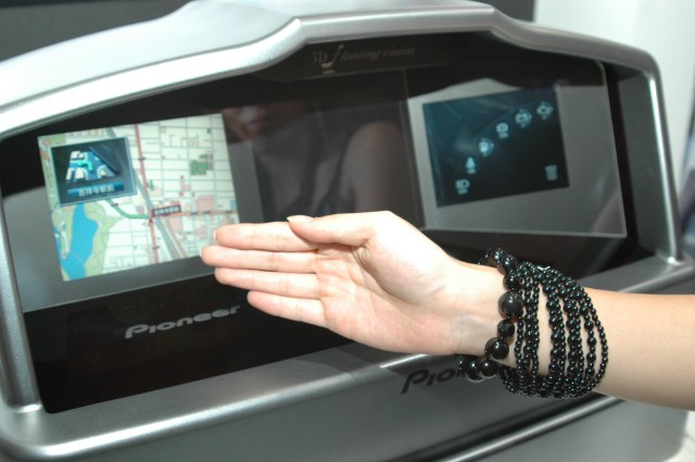 空中に浮遊する立体映像に手で触れて操作することができる