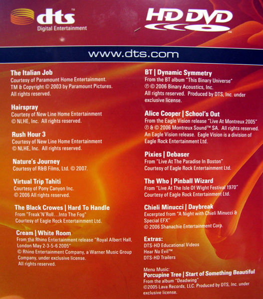 DTSデモディスク2008年版(HD DVD)の裏ジャケット