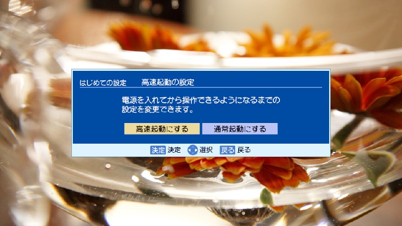 「高速起動モード」ONを選択するとリモコンのボタンから番組表を高速起動できるようになる