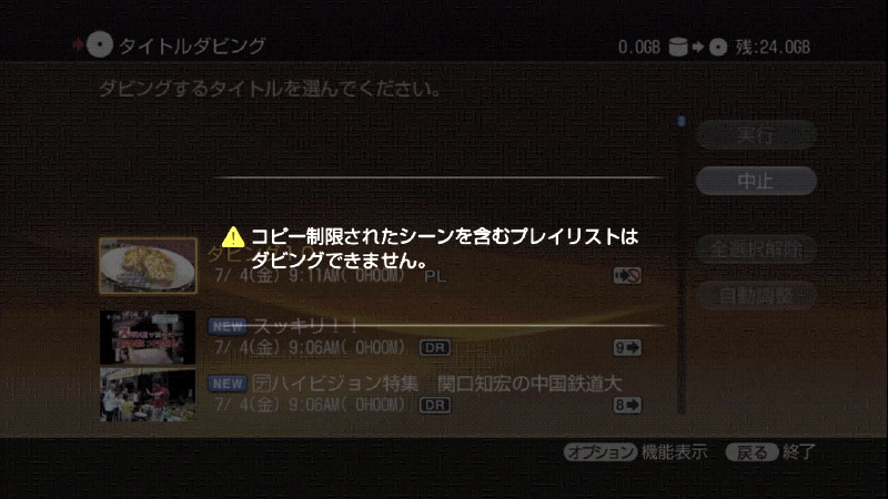 やっぱりプレイリストを使ったダビングの実行は不可。これを実現すれば編集の自由度が大幅に向上したのに残念