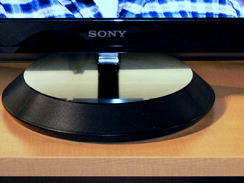 テーブルスタンドにスピーカーが内蔵されている。オプションで取り替えることも可能