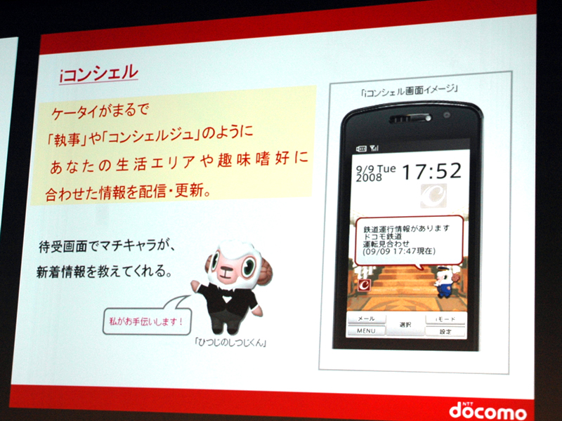 iコンシェルでは「ひつじのしつじくん」がユーザーに情報を知らせる
