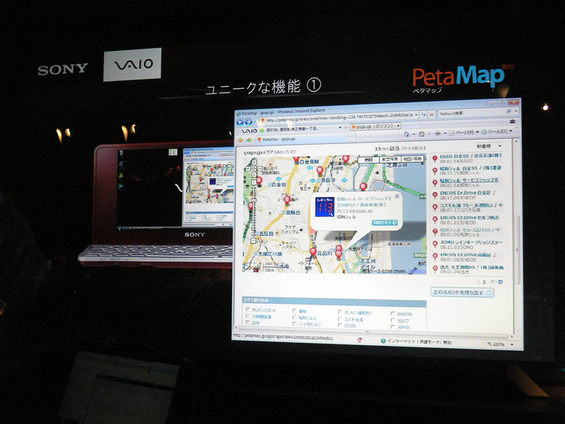 PetaMapなどとの連携が可能。ガソリンスタンド検索ではそのスタンドごとの値段も表示されている